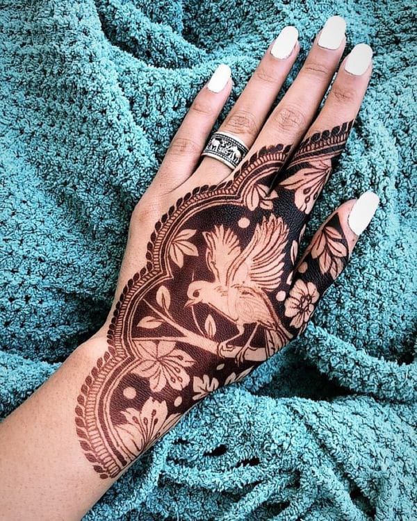 Indo-Western mehndi blends traditional Indian motifs with modern patterns for a stylish and contemporary look.